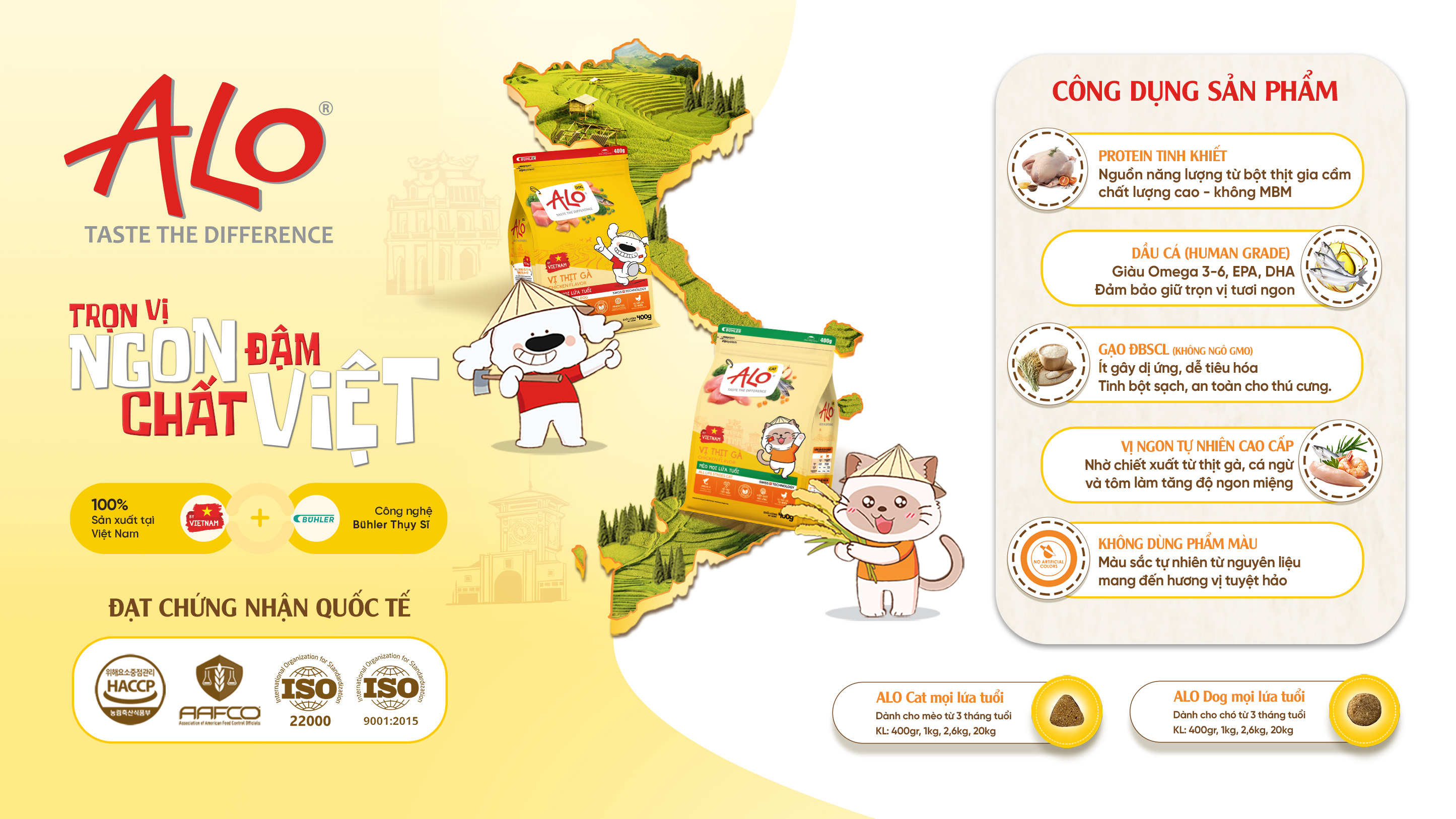 ALO - Thức ăn hỗn hợp hoàn chỉnh và cân bằng dinh dưỡng cho chó 20kg (400gr x 50gói)