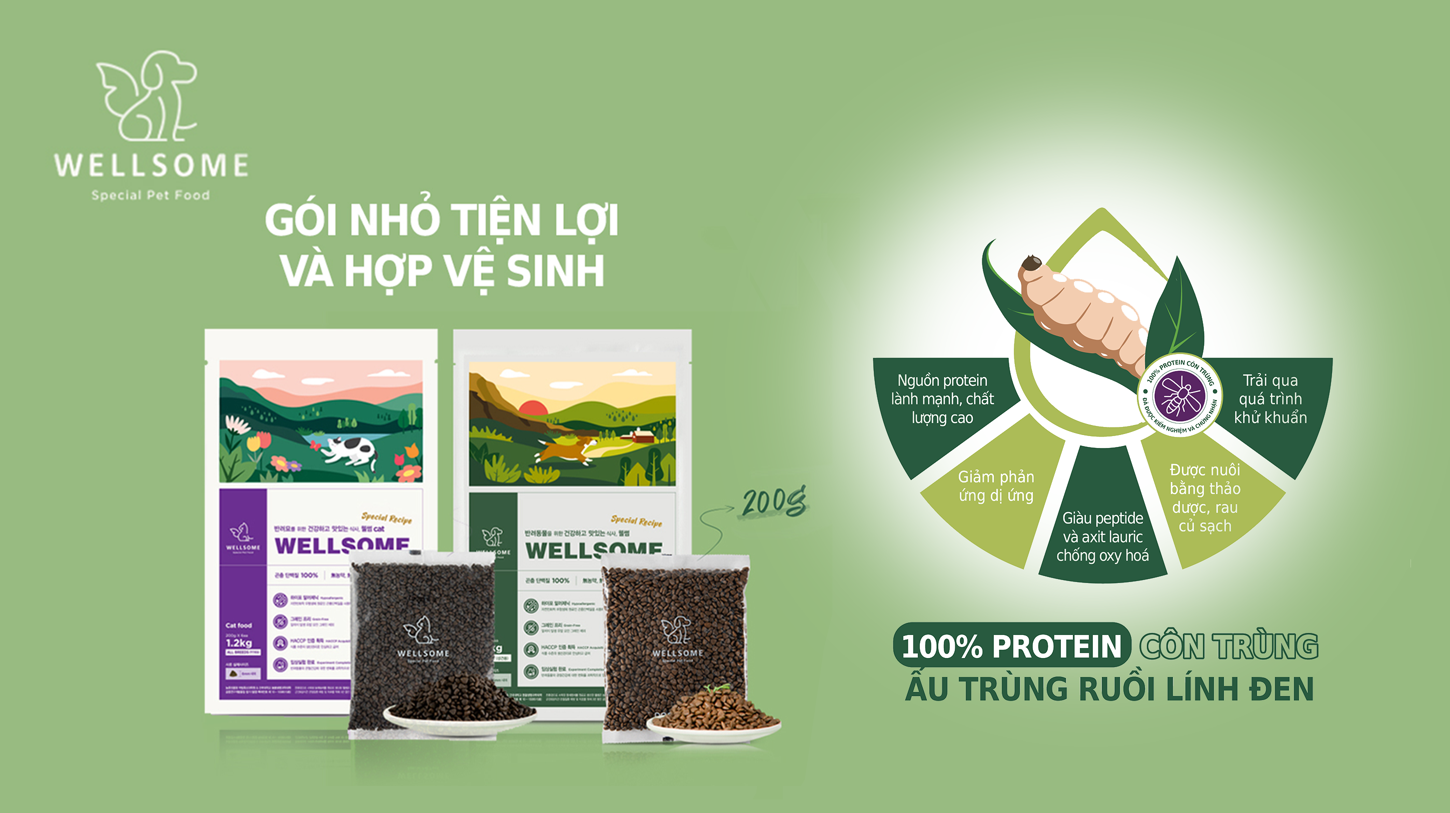 WELLSOME - Thức ăn hạt cho chó 100% protein côn trùng