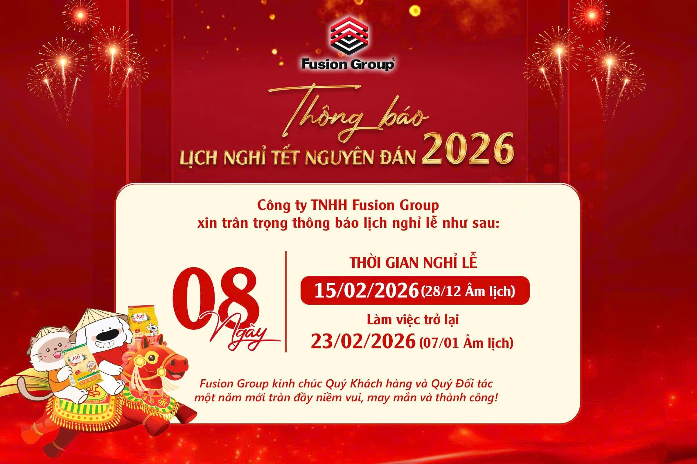 Nhân dịp năm mới 2026, Fusion Group xin kính chúc Quý Đối Tác, Quý Khách Hàng một năm mới An Khang - Thịnh Vượng - Vạn Sự Như Ý. Chúng tôi chân thành cảm ơn Quý Đối Tác, Quý Khách Hàng đã luôn tin tưởng, đồng hành cùng Fusion Group trong suốt thời gian qua.